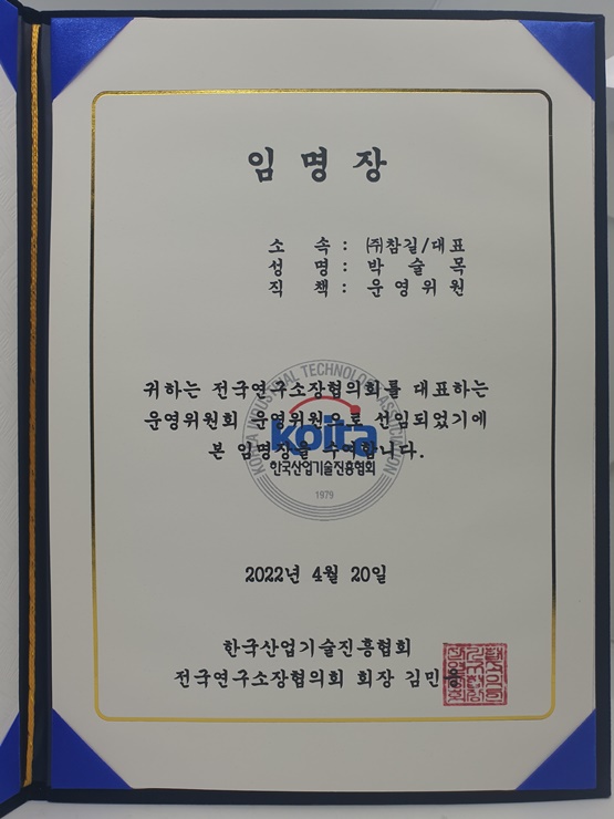 전국연구소장협의회 운영위원회 운영위원 임명 페이지 정보 작성자 최고관리자 작성일22-04-27 13:55 조회27,544회 댓글0건 관련링크 본문 (주)참길 대표님께서 전국연구소장협의회 운영위원회 운영위원으로 임명되셨습니다. 댓글목록 등록된 댓글이 없습니다. 이전글 다음글 목록